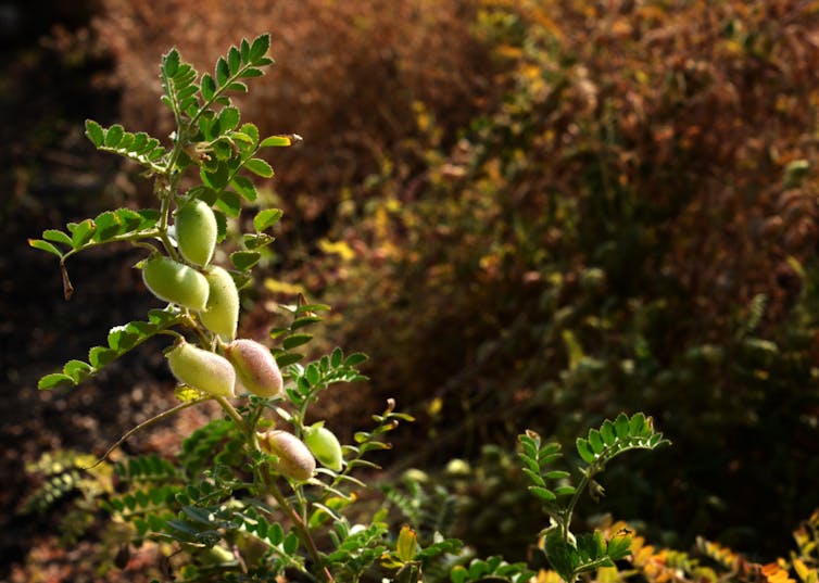 Nós e nossos colegas estamos focados no humilde grão-de-bico, uma leguminosa altamente nutritiva de particular importância para os 1,4 bilhões de habitantes da Índia. Os grãos-de-bico, assim como outras culturas leguminosas, retiram nitrogênio do ar e o fixam no solo, melhorando a fertilidade e ajudando a compensar as emissões de óxido nitroso, um gás de efeito estufa menos conhecido.